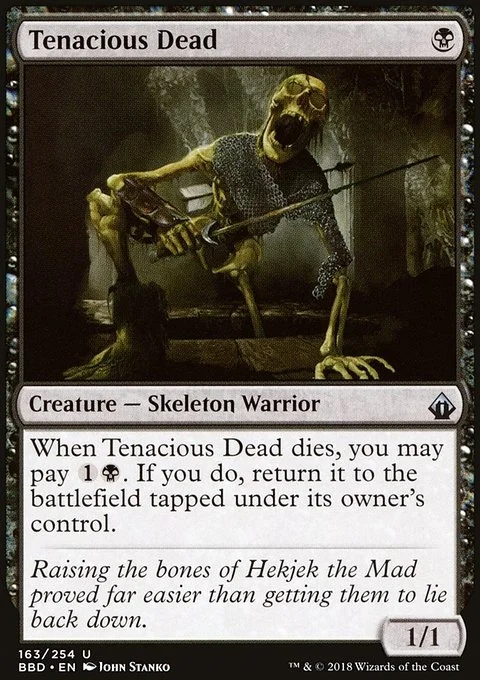 When Tenacious Dead dies, you may pay {1}{B}. If you do, return it to the battlefield tapped under its owner's control.