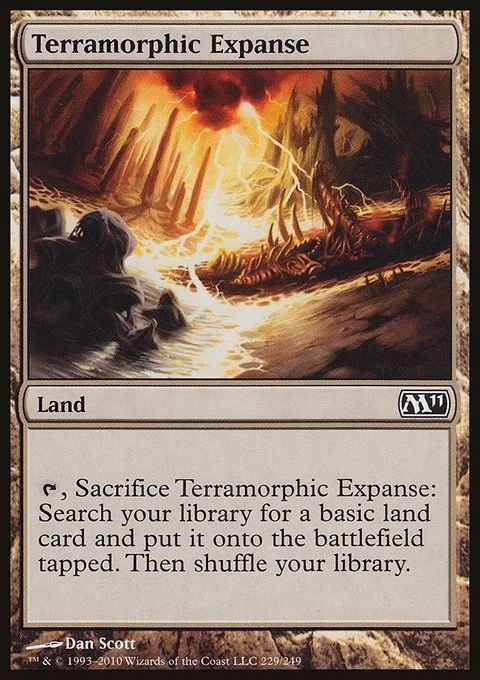 {T}, Sacrifice Terramorphic Expanse: Search your library for a basic land card, put it onto the battlefield tapped, then shuffle your library.