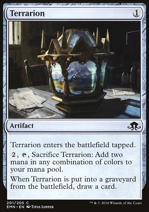 This artifact enters tapped. {2}, {T}, Sacrifice this artifact: Add two mana in any combination of colors. When this artifact is put into a graveyard from the battlefield, draw a card.