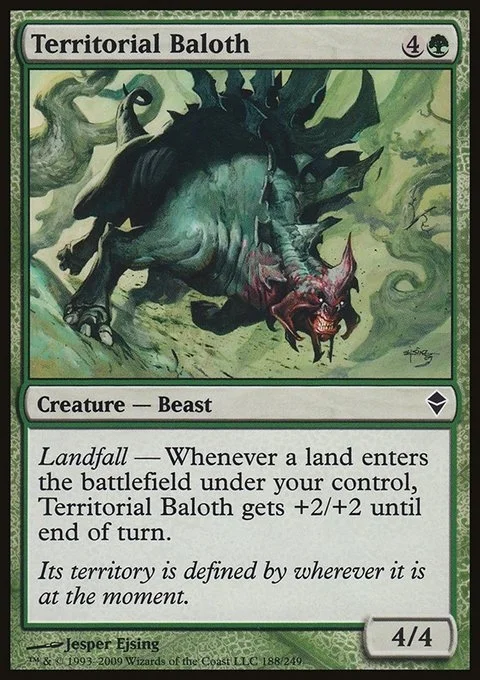 Landfall — Whenever a land enters the battlefield under your control, Territorial Baloth gets +2/+2 until end of turn.