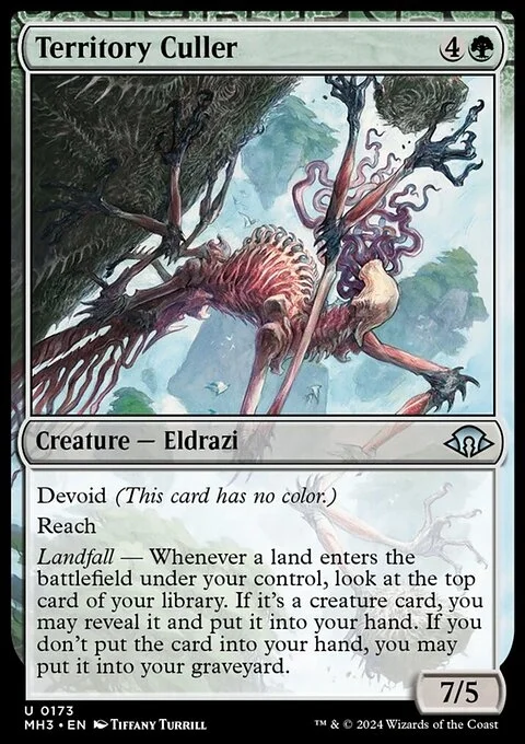 Landfall — Whenever a land enters the battlefield under your control, look at the top card of your library. If it's a creature card, you may reveal it and put it into your hand. If you don't put the card into your hand, you may put it into your graveyard.