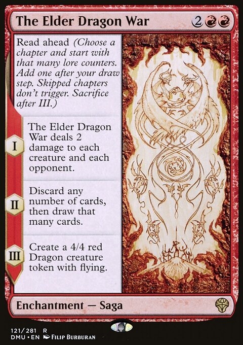 I — The Elder Dragon War deals 2 damage to each creature and each opponent.