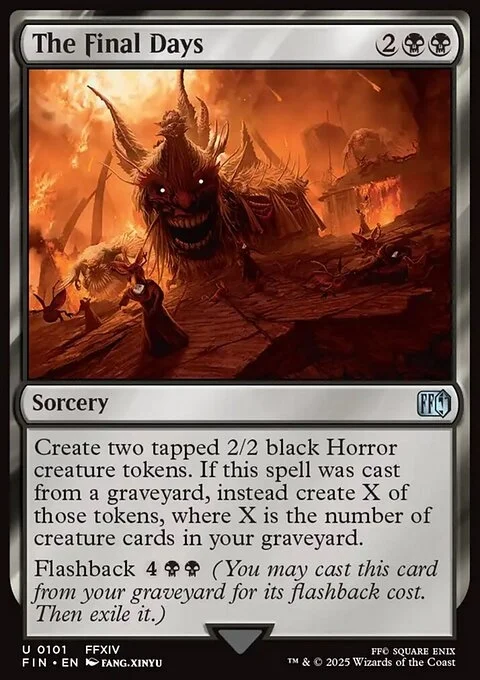 Create two tapped 2/2 black Horror creature tokens. If this spell was cast from a graveyard, instead create X of those tokens, where X is the number of creature cards in your graveyard.