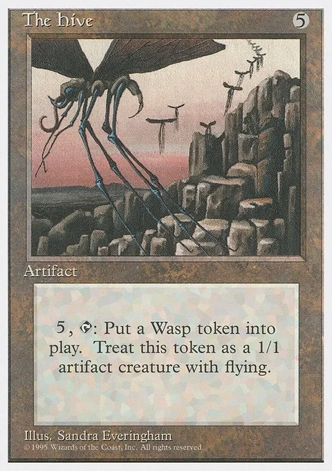 5, T: Put a Wasp token into play. Treat this token as a 1/1 artifact creature with flying.