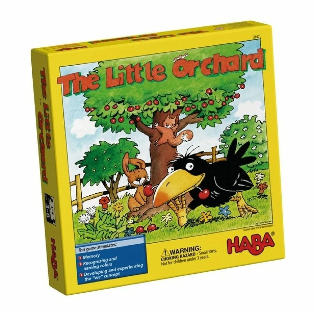 Contents: 1 game board, 1 cherry tree, 1 raven, 5 pairs of cherries, 1 little basket, 1 color die, 15 flower cards, 1 set of game instructions.