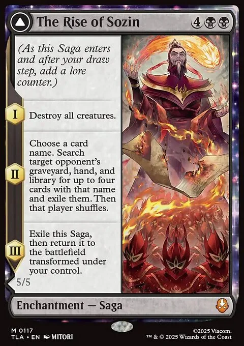 Whenever Fire Lord Sozin deals combat damage to a player, you may pay {X}. When you do, put any number of target creature cards with total mana value X or less from that player's graveyard onto the battlefield under your control.