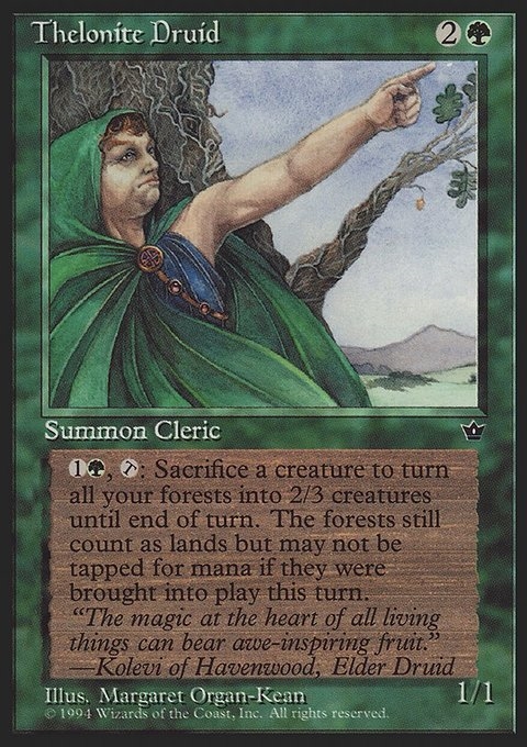 {1}{G}, {T}, Sacrifice a creature: Forests you control become 2/3 creatures until end of turn. They're still lands.