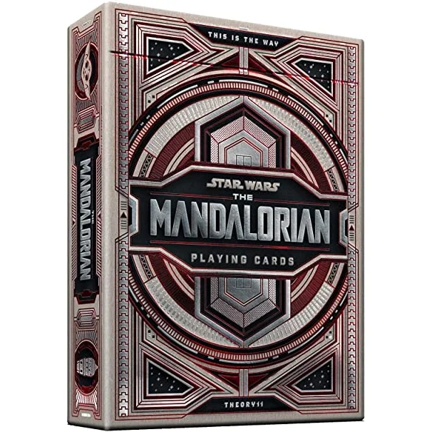 The outer packaging is simply breathtaking. Beskar silver, space black, and striking red foils shroud the cards within, with sculpted 3D embossing of The Mandalorian helmet.
