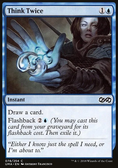 Draw a card. Flashback {2}{U} (You may cast this card from your graveyard for its flashback cost. Then exile it.)