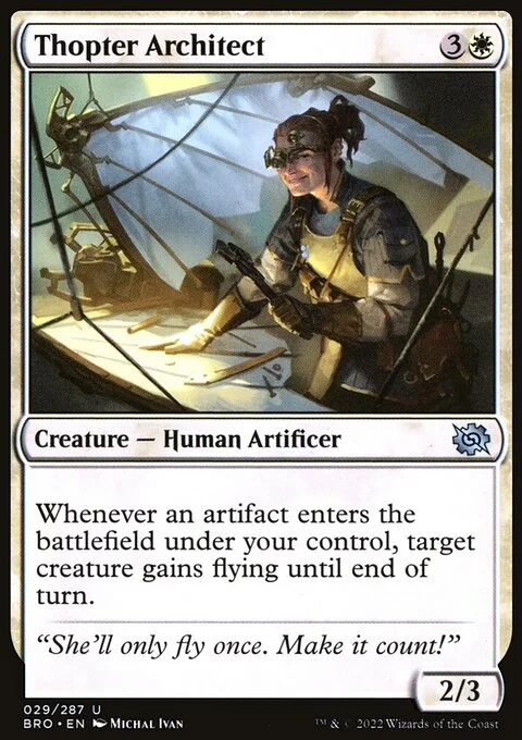 Whenever an artifact enters the battlefield under your control, target creature gains flying until end of turn.