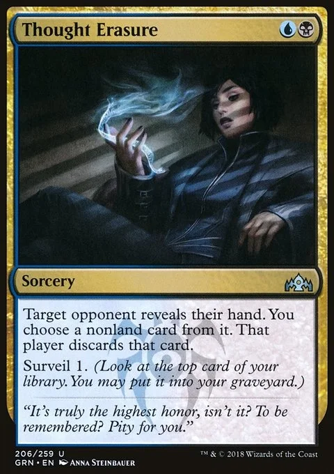Target opponent reveals their hand. You choose a nonland card from it. That player discards that card. Surveil 1. (Look at the top card of your library. You may put it into your graveyard.)