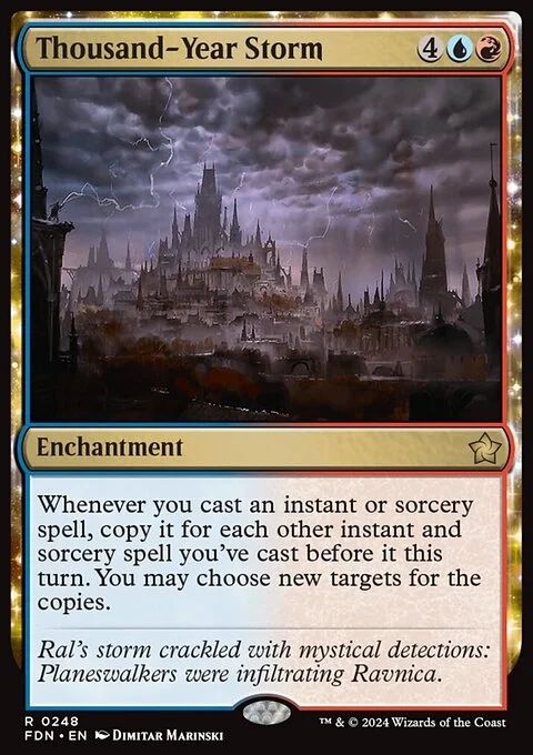 Whenever you cast an instant or sorcery spell, copy it for each other instant and sorcery spell you've cast before it this turn. You may choose new targets for the copies.