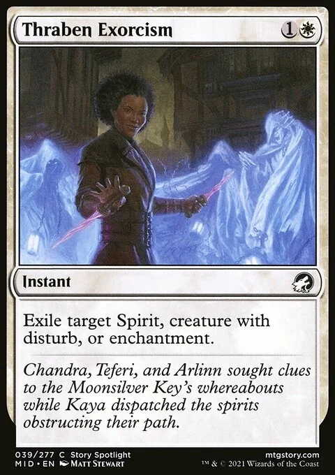 Exile target Spirit, creature with disturb, or enchantment.