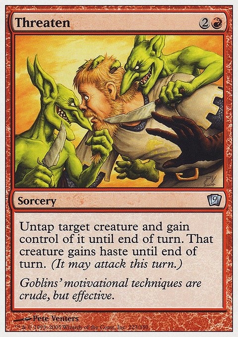 Untap target creature and gain control of it until end of turn. That creature gains haste until end of turn. (It may attack this turn.)