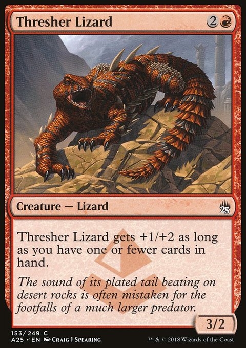 Thresher Lizard gets +1/+2 as long as you have one or fewer cards in hand.