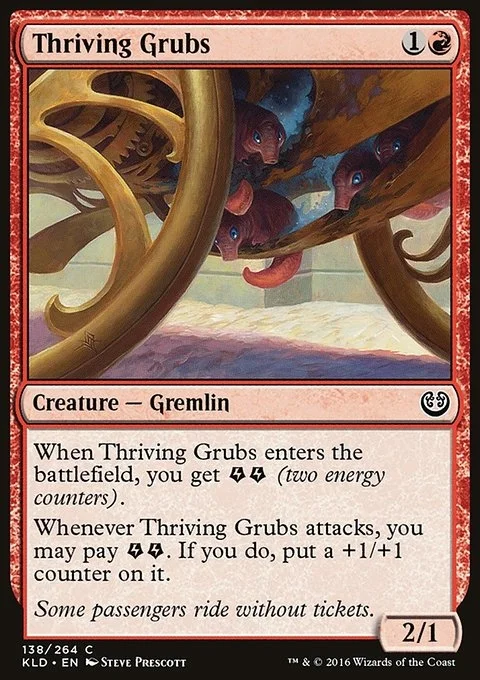 When this creature enters, you get {E}{E} (two energy counters). Whenever this creature attacks, you may pay {E}{E}. If you do, put a +1/+1 counter on it.