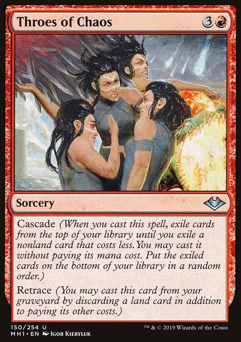 Cascade (When you cast this spell, exile cards from the top of your library until you exile a nonland card that costs less. You may cast it without paying its mana cost. Put the exiled cards on the bottom in a random order.) Retrace (You may cast this card from your graveyard by discarding a land card in addition to paying its other costs.)