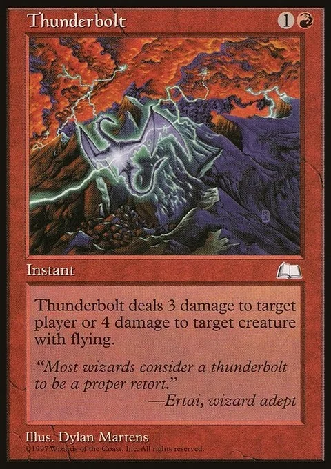 Choose one — • Thunderbolt deals 3 damage to target player or planeswalker. • Thunderbolt deals 4 damage to target creature with flying.