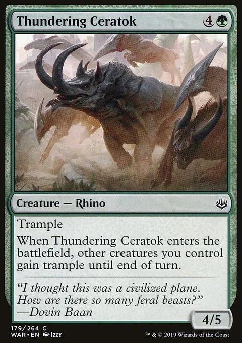 Trample When Thundering Ceratok enters the battlefield, other creatures you control gain trample until end of turn.