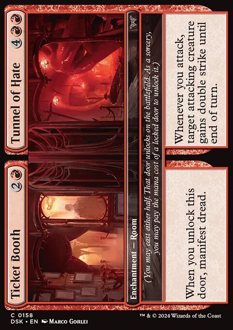 (You may cast either half. That door unlocks on the battlefield. As a sorcery, you may pay the mana cost of a locked door to unlock it.)
