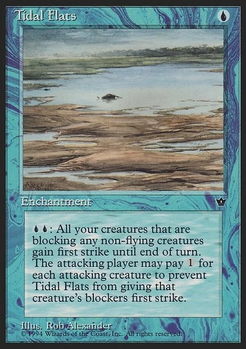 {U}{U}: For each attacking creature without flying, its controller may pay {1}. If that player doesn't, creatures you control blocking that creature gain first strike until end of turn.