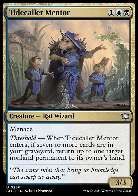 Menace Threshold — When Tidecaller Mentor enters, if seven or more cards are in your graveyard, return up to one target nonland permanent to its owner's hand.