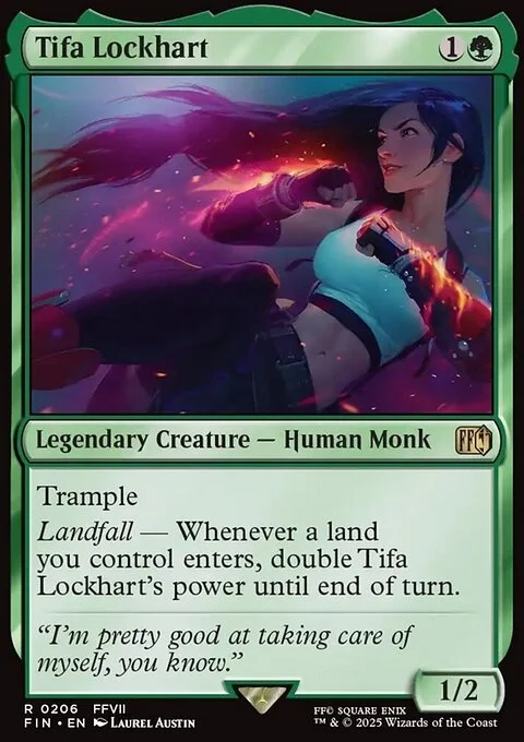 Trample Landfall — Whenever a land you control enters, double Tifa Lockhart's power until end of turn.