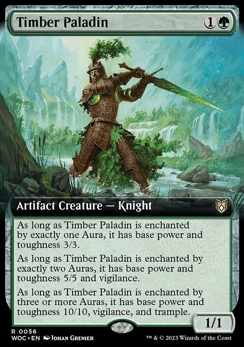 As long as this creature is enchanted by three or more Auras, it has base power and toughness 10/10, vigilance, and trample.