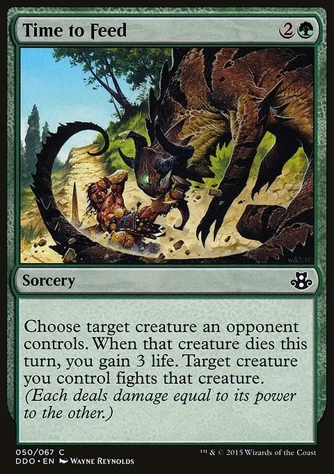 Choose target creature an opponent controls. When that creature dies this turn, you gain 3 life. Target creature you control fights that creature. (Each deals damage equal to its power to the other.)
