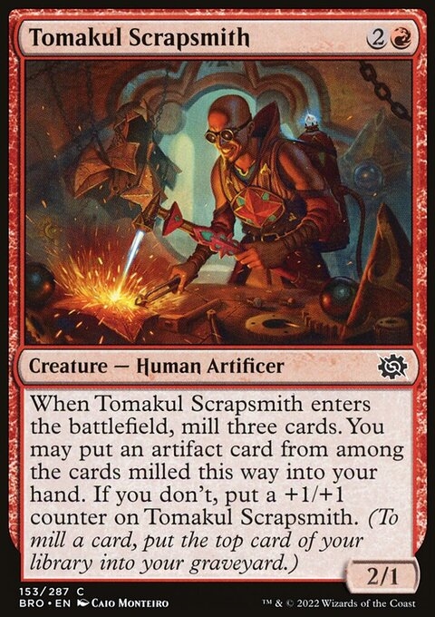 When this creature enters, mill three cards. You may put an artifact card from among the cards milled this way into your hand. If you don't, put a +1/+1 counter on this creature. (To mill a card, put the top card of your library into your graveyard.)