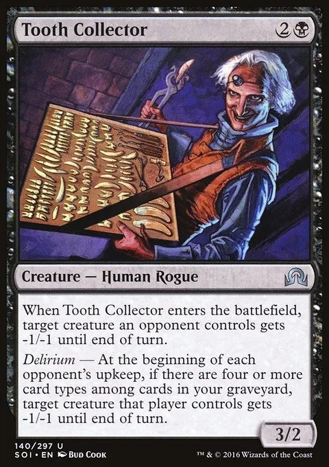 When Tooth Collector enters the battlefield, target creature an opponent controls gets -1/-1 until end of turn.