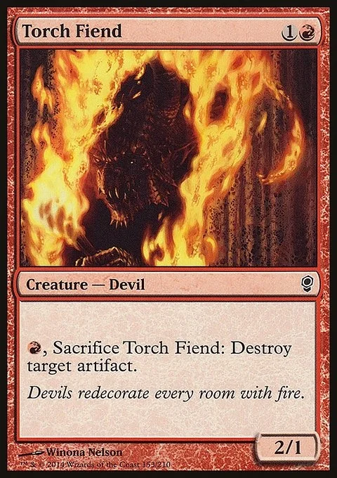 {R}, Sacrifice Torch Fiend: Destroy target artifact.