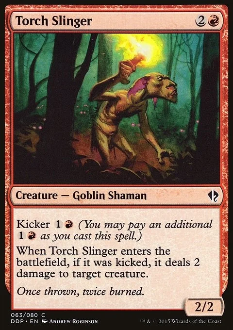 Kicker {1}{R} (You may pay an additional {1}{R} as you cast this spell.) When this creature enters, if it was kicked, it deals 2 damage to target creature.