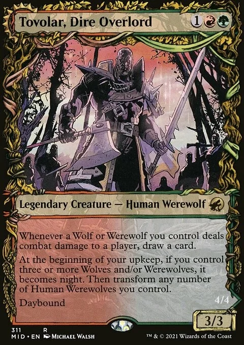 At the beginning of your upkeep, if you control three or more Wolves and/or Werewolves, it becomes night. Then transform any number of Human Werewolves you control.