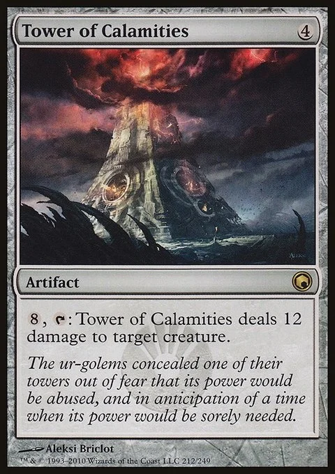 {8}, {T}: Tower of Calamities deals 12 damage to target creature.