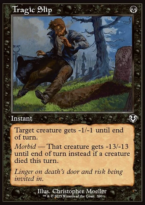 Target creature gets -1/-1 until end of turn. Morbid — That creature gets -13/-13 until end of turn instead if a creature died this turn.
