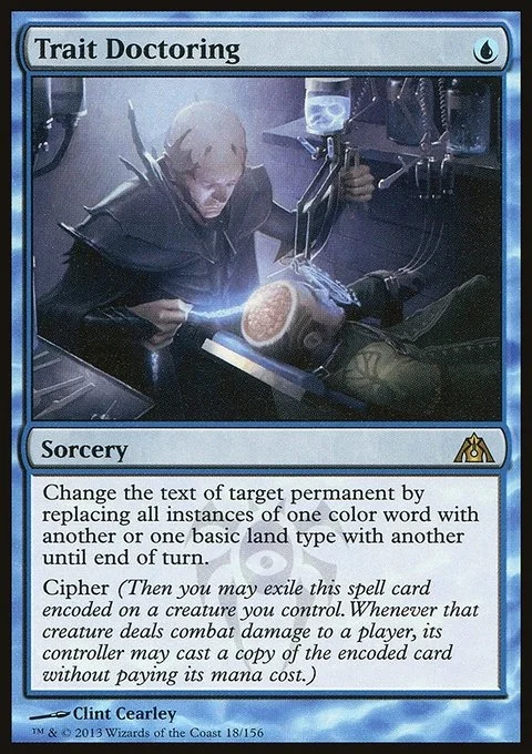 Change the text of target permanent by replacing all instances of one color word with another or one basic land type with another until end of turn. Cipher (Then you may exile this spell card encoded on a creature you control. Whenever that creature deals combat damage to a player, its controller may cast a copy of the encoded card without paying its mana cost.)