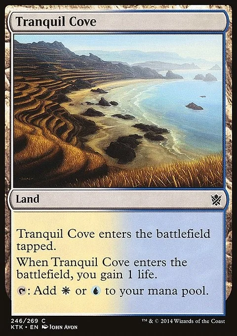Tranquil Cove enters the battlefield tapped. When Tranquil Cove enters the battlefield, you gain 1 life. {T}: Add {W} or {U}.