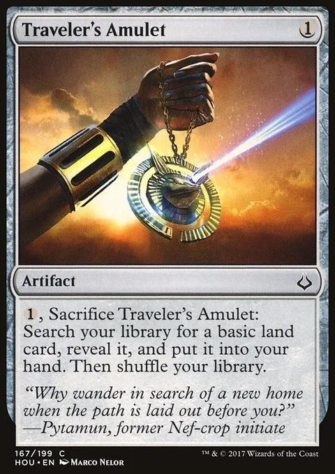 {1}, Sacrifice this artifact: Search your library for a basic land card, reveal it, put it into your hand, then shuffle.