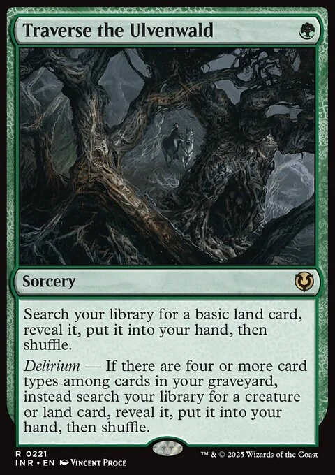 Delirium — If there are four or more card types among cards in your graveyard, instead search your library for a creature or land card, reveal it, put it into your hand, then shuffle.