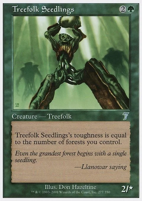 Treefolk Seedlings's toughness is equal to the number of Forests you control.