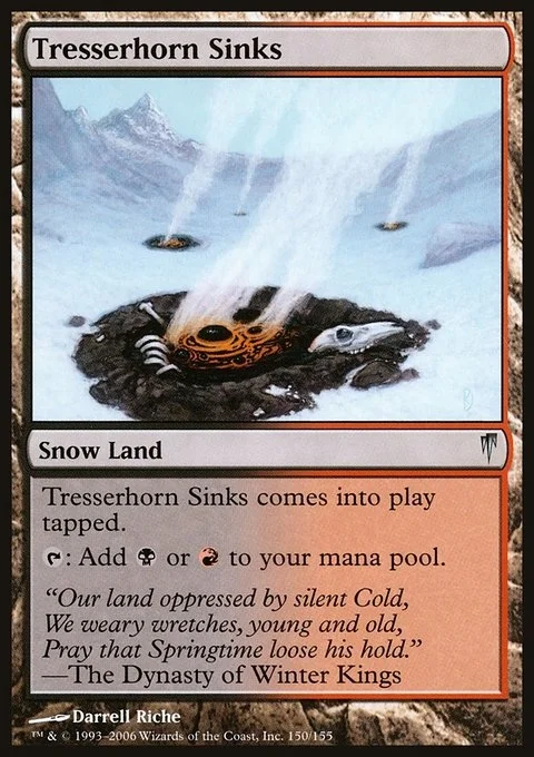 Tresserhorn Sinks enters the battlefield tapped. {T}: Add {B} or {R}.