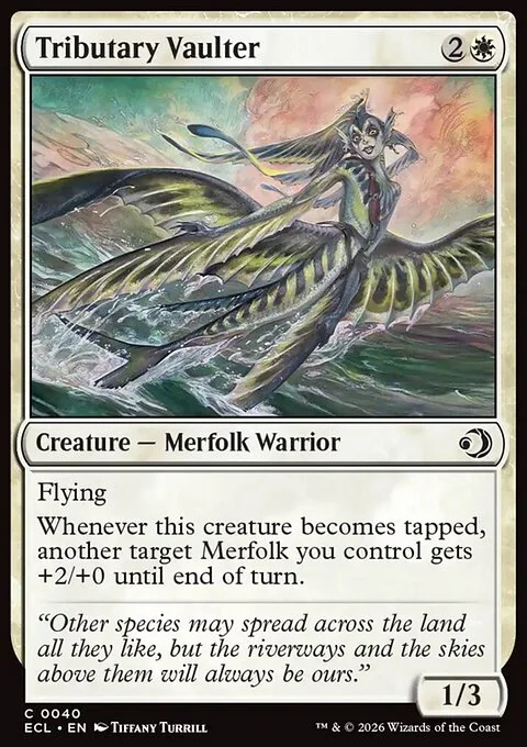 Flying Whenever this creature becomes tapped, another target Merfolk you control gets +2/+0 until end of turn.
