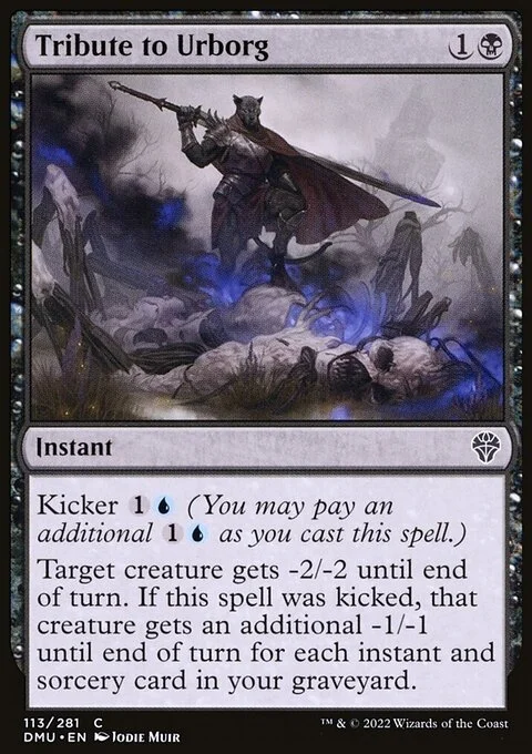 Kicker {1}{U} (You may pay an additional {1}{U} as you cast this spell.) Target creature gets -2/-2 until end of turn. If this spell was kicked, that creature gets an additional -1/-1 until end of turn for each instant and sorcery card in your graveyard.