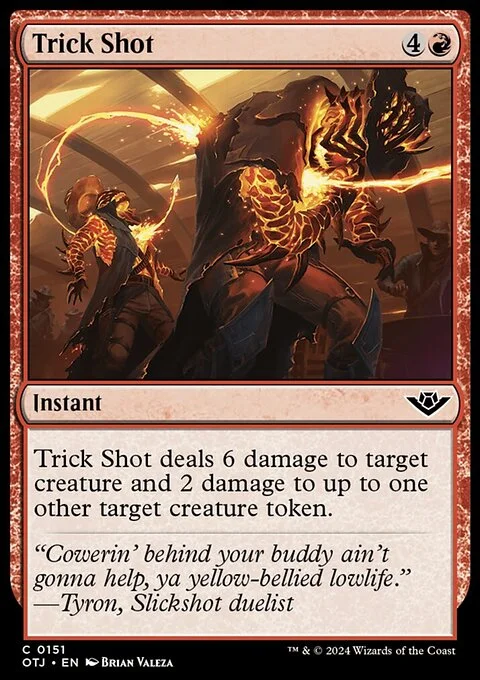 Trick Shot deals 6 damage to target creature and 2 damage to up to one other target creature token.