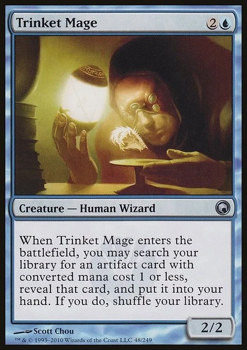 When this creature enters, you may search your library for an artifact card with mana value 1 or less, reveal that card, put it into your hand, then shuffle.