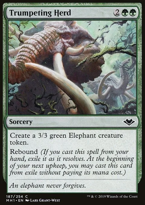 Create a 3/3 green Elephant creature token. Rebound (If you cast this spell from your hand, exile it as it resolves. At the beginning of your next upkeep, you may cast this card from exile without paying its mana cost.)