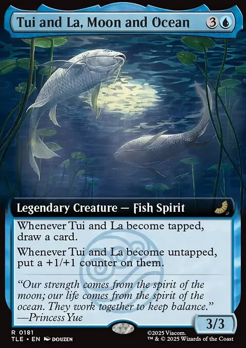 Whenever Tui and La become tapped, draw a card. Whenever Tui and La become untapped, put a +1/+1 counter on them.