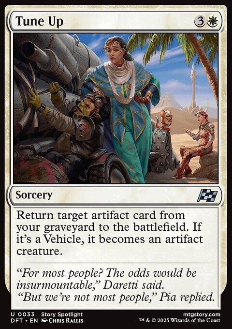 Return target artifact card from your graveyard to the battlefield. If it's a Vehicle, it becomes an artifact creature.