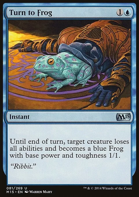 Until end of turn, target creature loses all abilities and becomes a blue Frog with base power and toughness 1/1.